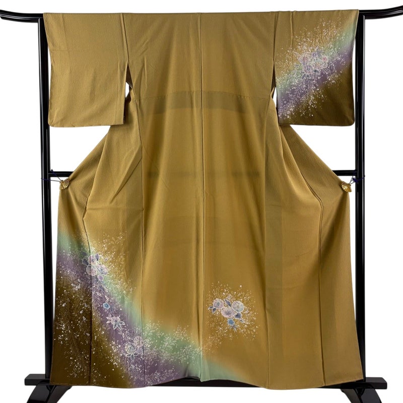 【訪問着】 黄色系 山吹茶色 名品 B 約150cm~約159cm 裄丈63cm-64cm (M)size 袖丈49cm 9990-29990 二万以下