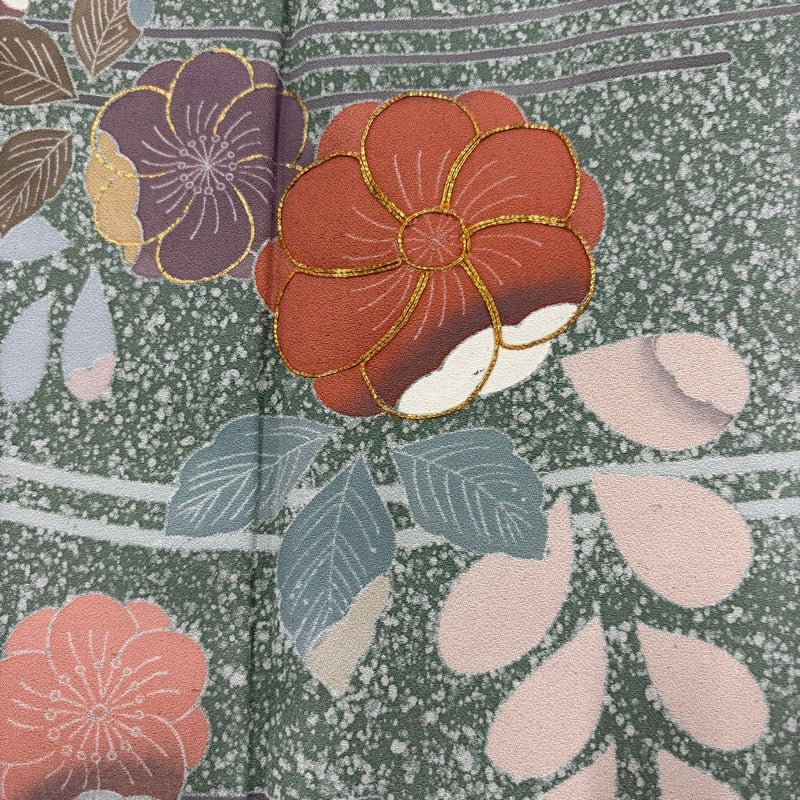 【着物ランク】秀品 【素材】正絹 【身丈】約173cm 【裄丈】約67.5cm 【袖丈】約49.5cm 【袖幅】約34cm 【前幅】約24.5cm 【後幅】約29.5cm 【サイズ】L 【着物仕立て】袷 【着用時期】10~5月 【状態ランク】ランクB 【着物着用シーン】披露宴、パーティー、お見合い、式典、茶会