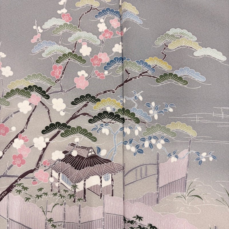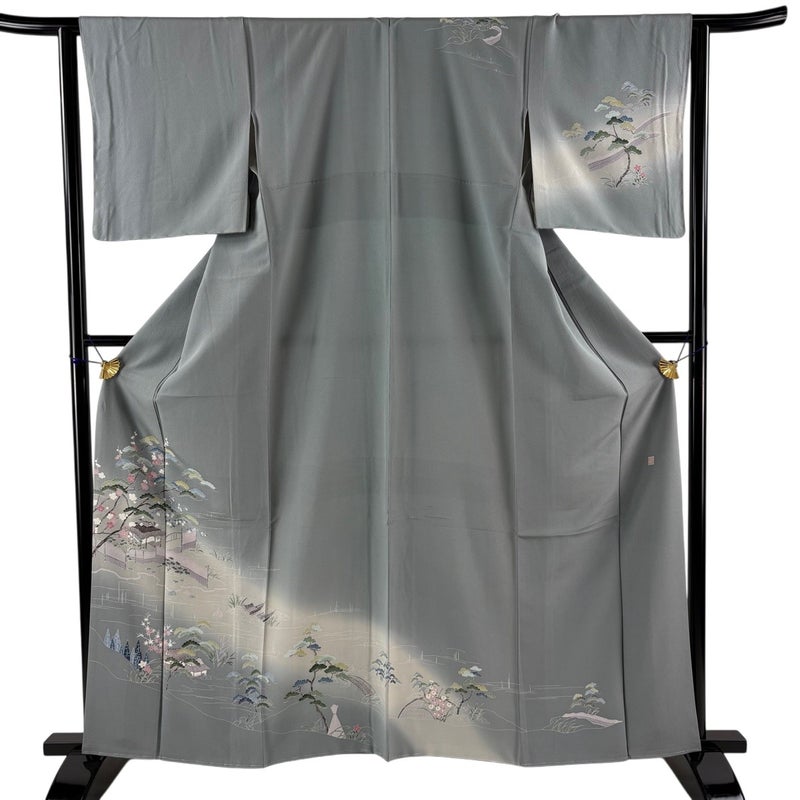 【訪問着】 灰色系 灰緑 秀品 B 約160cm~約169cm 裄丈63cm-64cm (S)size 袖丈47cm 7990-9980 二万以下