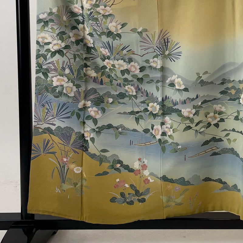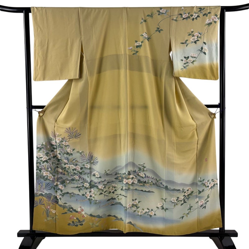 【訪問着】 黄色系 薄黄 秀品 B 約150cm~約159cm 裄丈63cm-64cm (S)size 袖丈50cm-60cm 7990-9980 二万以下