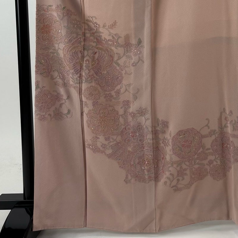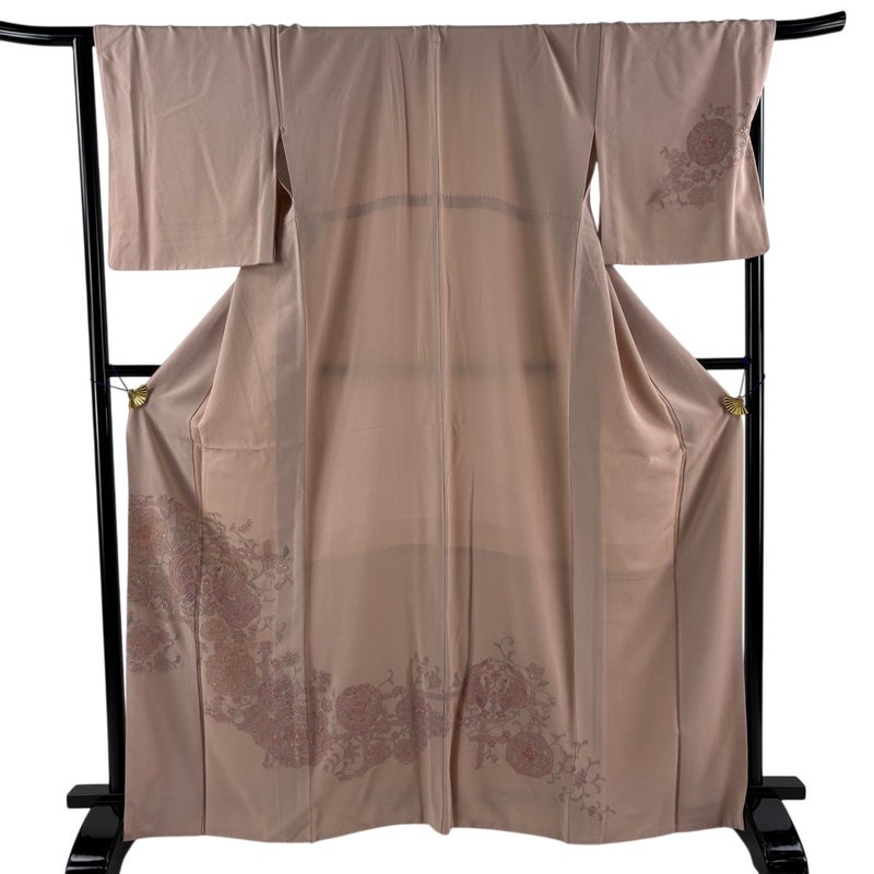 【訪問着】 赤系 ピンクベージュ 秀品 B 約160cm~約169cm 裄丈67cm-68cm (L)size 袖丈48cm 7990-9980 二万以下