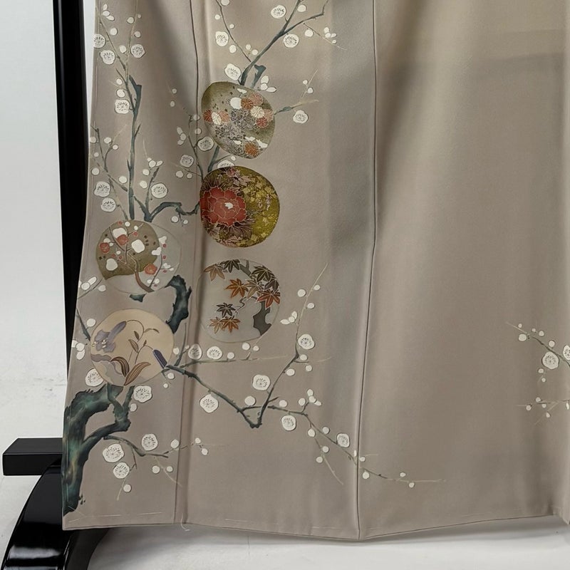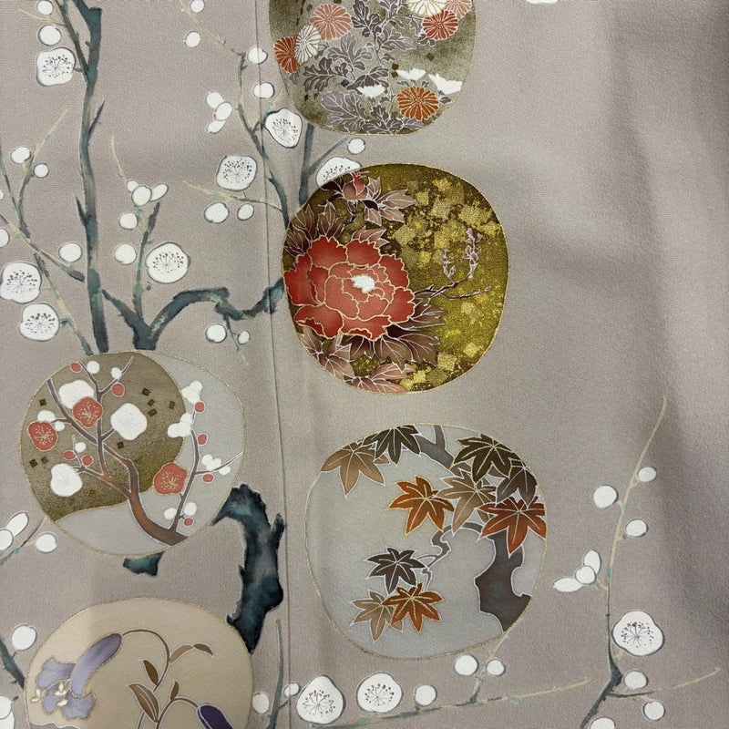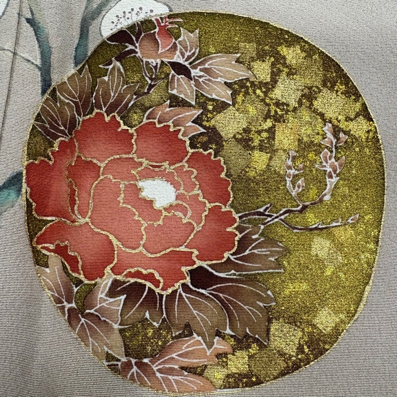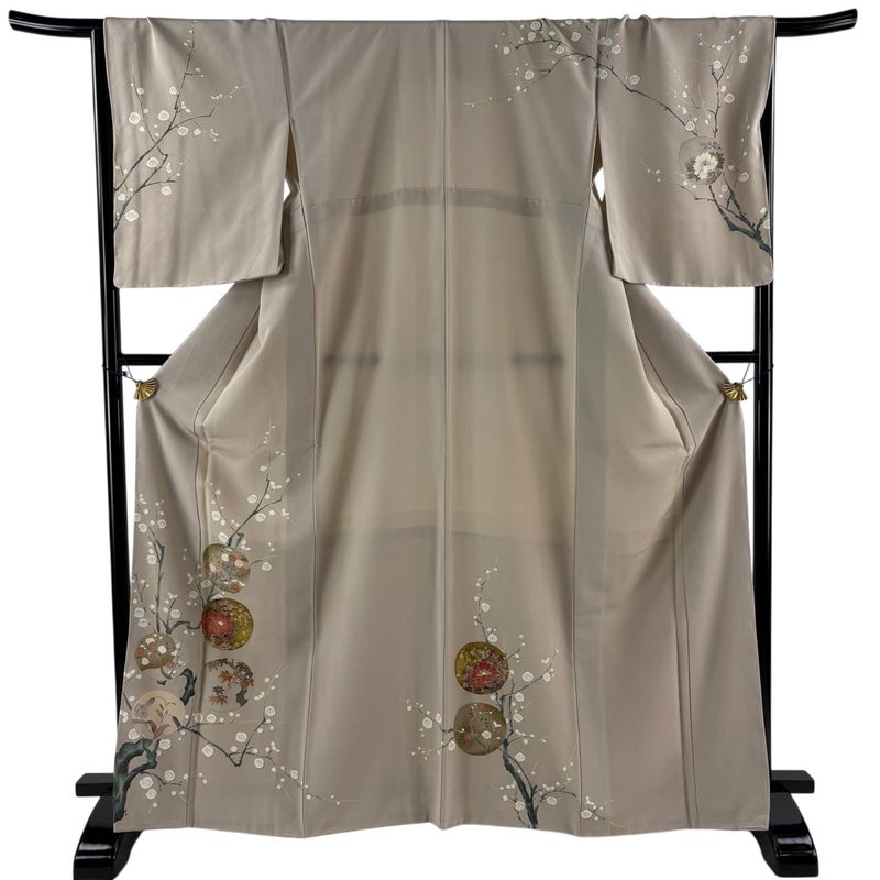 【着物ランク】秀品 【素材】正絹 【身丈】約167cm 【裄丈】約67cm 【袖丈】約54cm 【袖幅】約35cm 【前幅】約25cm 【後幅】約30.5cm 【サイズ】M 【着物仕立て】袷 【着用時期】10~5月 【状態ランク】ランクB 【着物着用シーン】披露宴、パーティー、お見合い、式典、茶会