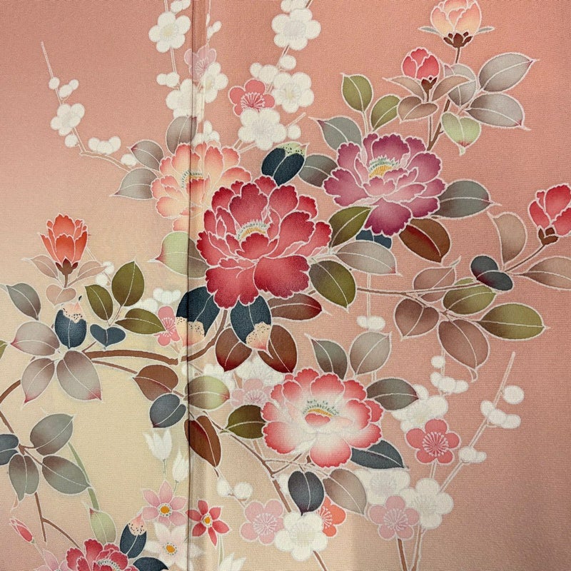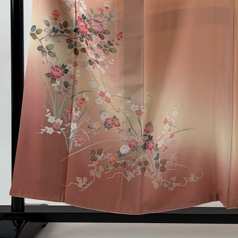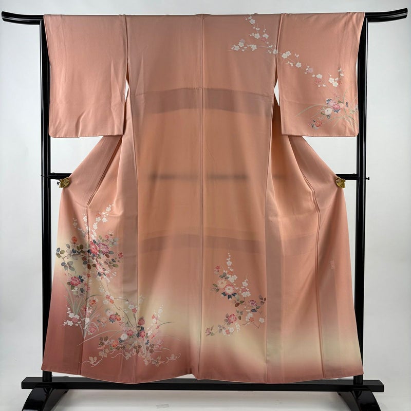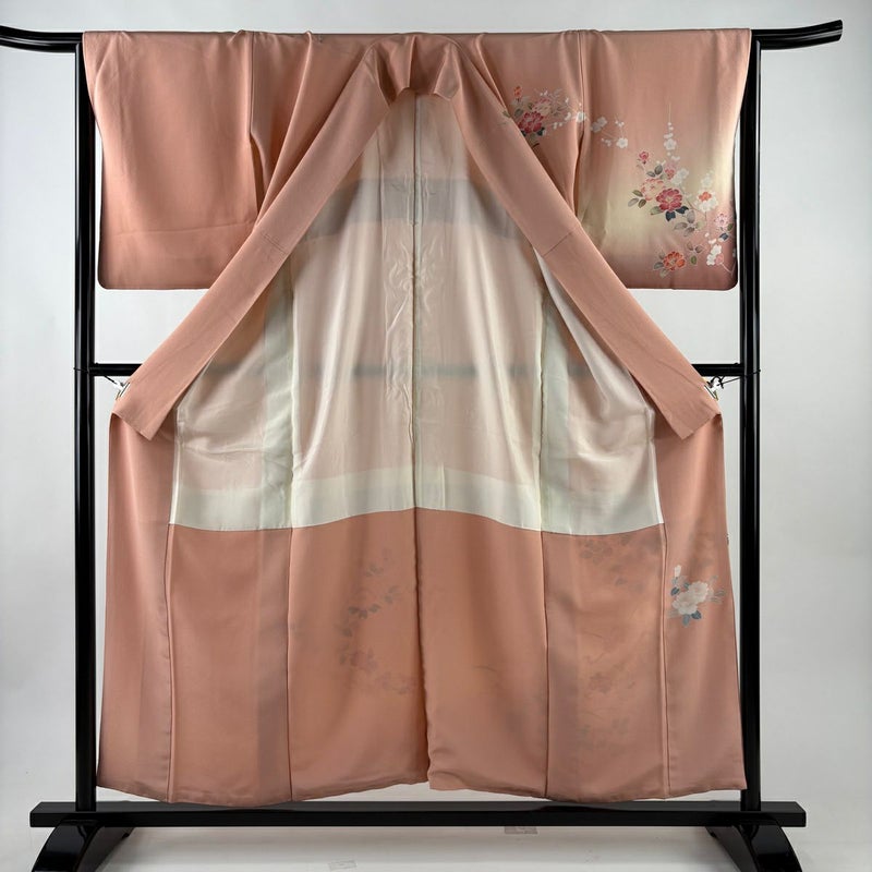 【訪問着】 赤系 サーモンピンク 秀品 B 約150cm~約159cm 裄丈65cm (M)size 袖丈50cm-60cm 7990-9980 二万以下