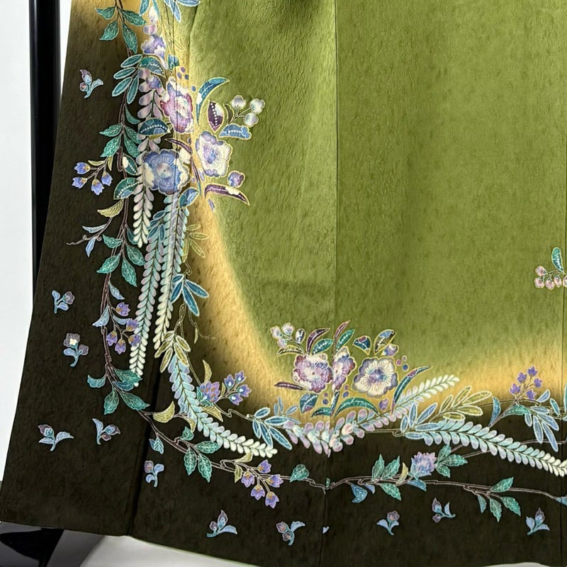 【訪問着】 緑系 抹茶色 秀品 C 約160cm~約169cm 裄丈67cm-68cm (L)size 袖丈49cm 7990-9980 二万以下