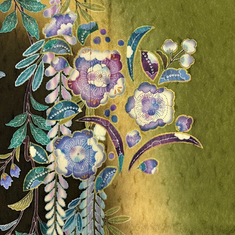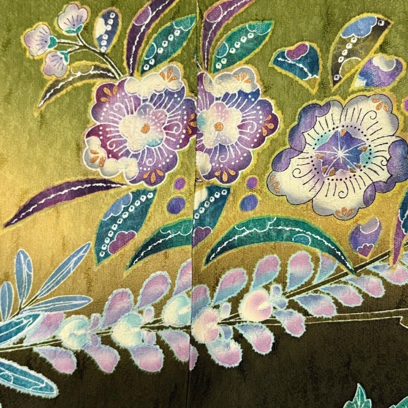【着物ランク】秀品 【素材】正絹 【身丈】約165cm 【裄丈】約68.5cm 【袖丈】約49cm 【袖幅】約35cm 【前幅】約26cm 【後幅】約32cm 【サイズ】L 【着物仕立て】袷 【着用時期】10~5月 【状態ランク】ランクC 【着物着用シーン】披露宴、パーティー、お見合い、式典、茶会