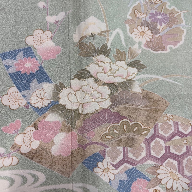 【訪問着】 緑系 薄緑 秀品 B 約160cm~約169cm 裄丈65cm (M)size 袖丈48cm 7990-9980 二万以下