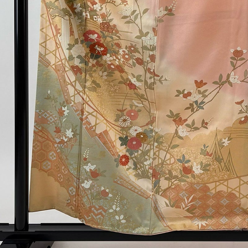 【訪問着】 赤系 薄オレンジ 秀品 C 約150cm~約159cm 裄丈65cm (M)size 袖丈50cm-60cm 7990-9980 二万以下