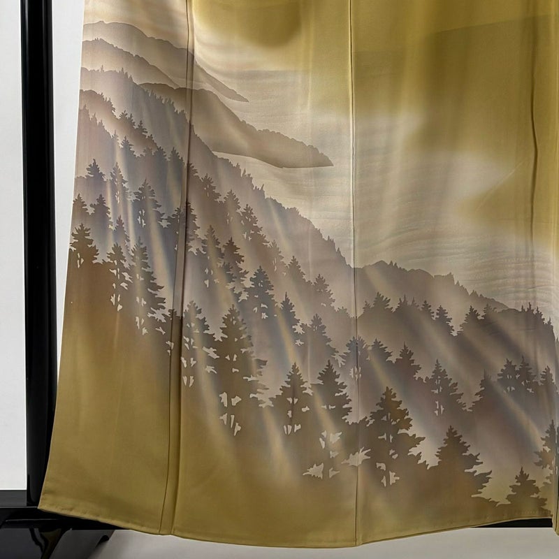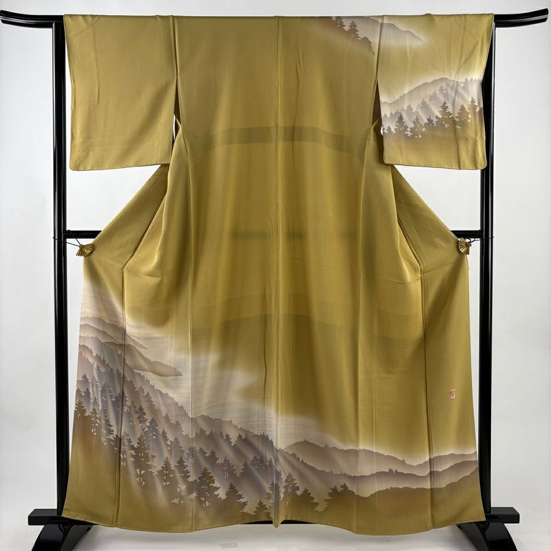 【訪問着】 黄色系 からし色 秀品 B 約160cm~約169cm 裄丈63cm-64cm (M)size 袖丈48cm 7990-9980 二万以下