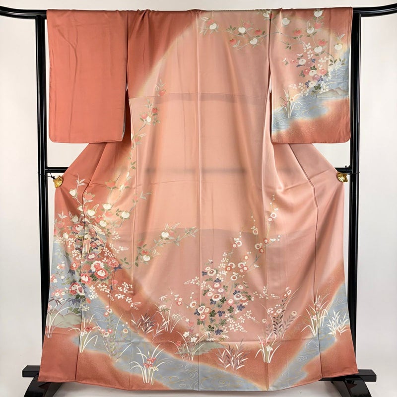 【着物ランク】秀品 【素材】正絹 【身丈】約164cm 【裄丈】約65cm 【袖丈】約56.5cm 【袖幅】約34cm 【前幅】約24cm 【後幅】約29.5cm 【サイズ】M 【着物仕立て】袷 【着用時期】10~5月 【状態ランク】ランクB 【着物着用シーン】披露宴、パーティー、お見合い、式典、茶会