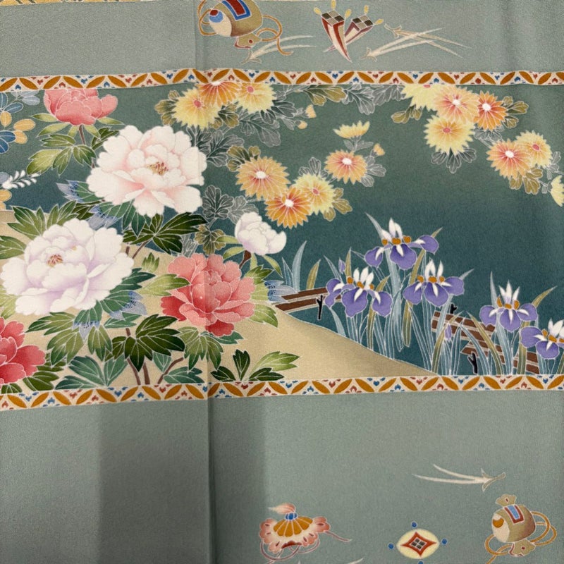 【訪問着】 灰色系 灰緑 秀品 B 約160cm~約169cm 裄丈66cm (M)size 袖丈48cm 7990-9980 二万以下