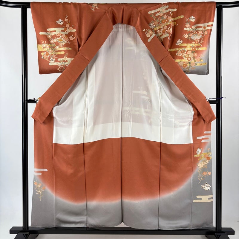 【訪問着】 赤系 赤茶 秀品 B 約150cm~約159cm 裄丈62cm以下 (S)size 袖丈48cm 7990-9980 二万以下