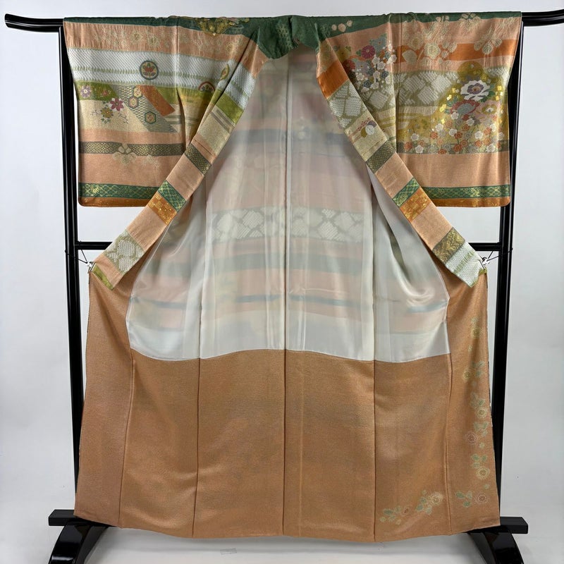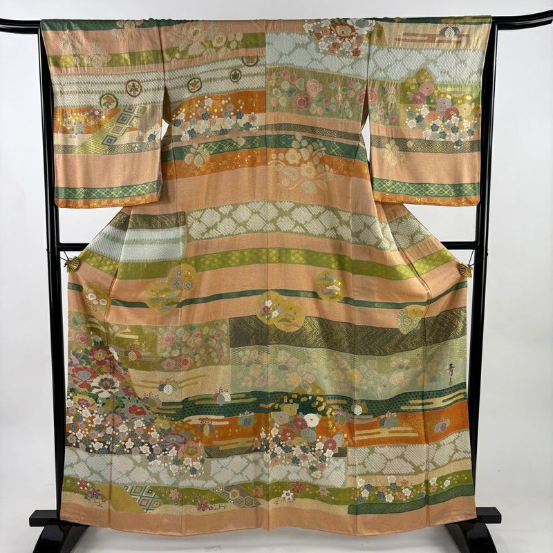 【訪問着】 赤系 薄オレンジ 逸品 B 約160cm~約169cm 裄丈66cm (M)size 袖丈50cm-60cm 30000- 五万以下