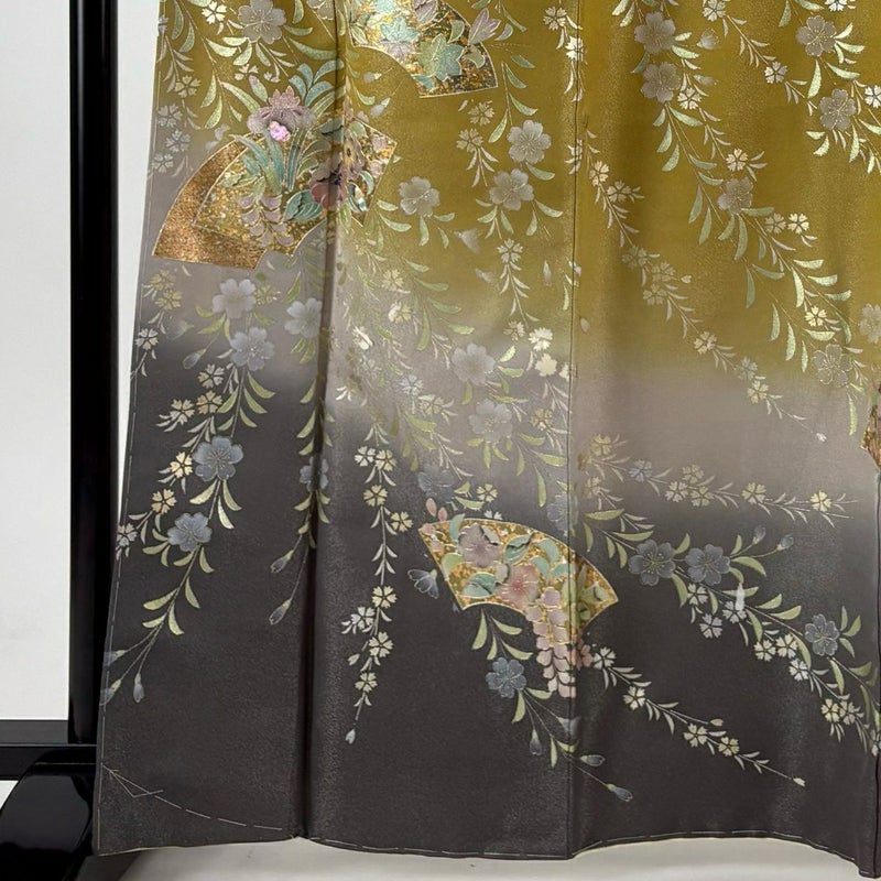 【訪問着】 黄色系 からし色 名品 B 約160cm~約169cm 裄丈63cm-64cm (M)size 袖丈48cm 9990-29990 二万以下