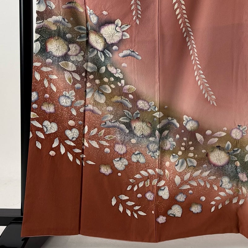 【着物ランク】名品 【素材】正絹 【身丈】約162cm 【裄丈】約63cm 【袖丈】約52.5cm 【袖幅】約33cm 【前幅】約22cm 【後幅】約28cm 【サイズ】S 【着物仕立て】袷 【着用時期】10~5月 【状態ランク】ランクB 【着物着用シーン】披露宴、パーティー、お見合い、式典、茶会