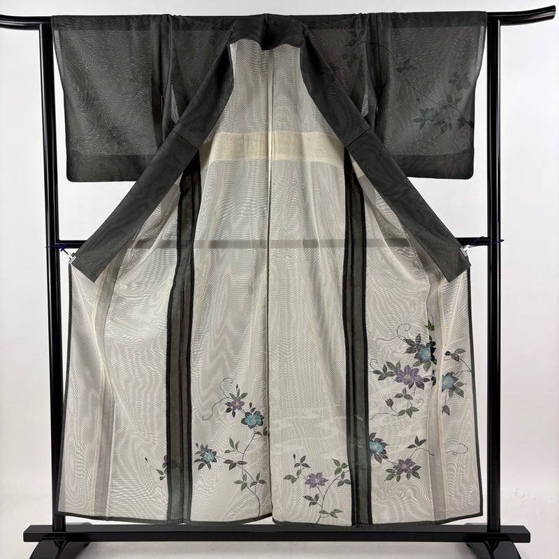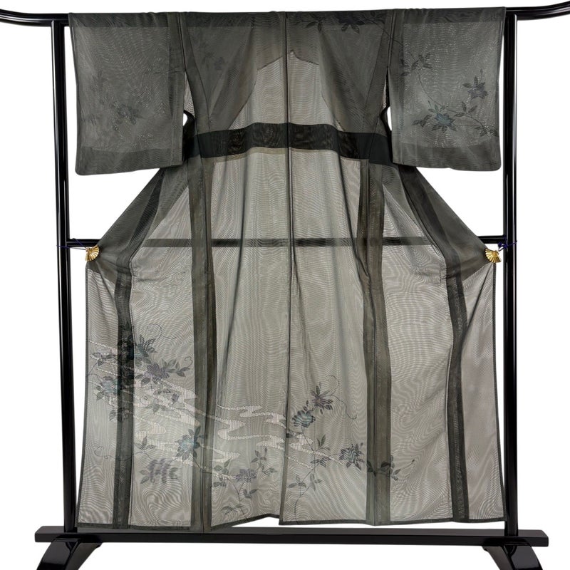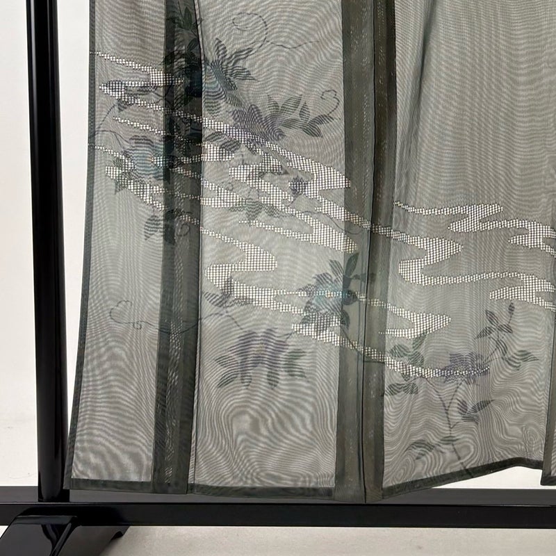 【着物ランク】名品 【素材】正絹 【身丈】約156.5cm 【裄丈】約62cm 【袖丈】約49cm 【袖幅】約32cm 【前幅】約22cm 【後幅】約29.5cm 【サイズ】S 【着物仕立て】紗袷 【着用時期】6/9月 【状態ランク】ランクA 【着物着用シーン】披露宴、パーティー、お見合い、式典、茶会