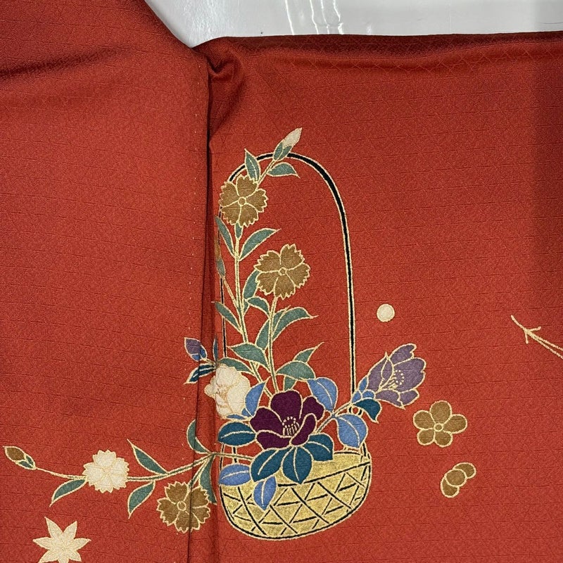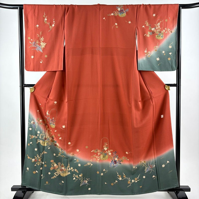【訪問着】 赤系 赤茶 秀品 A 約160cm~約169cm 裄丈65cm (M)size 袖丈50cm-60cm 9990-29990 美品 二万以下
