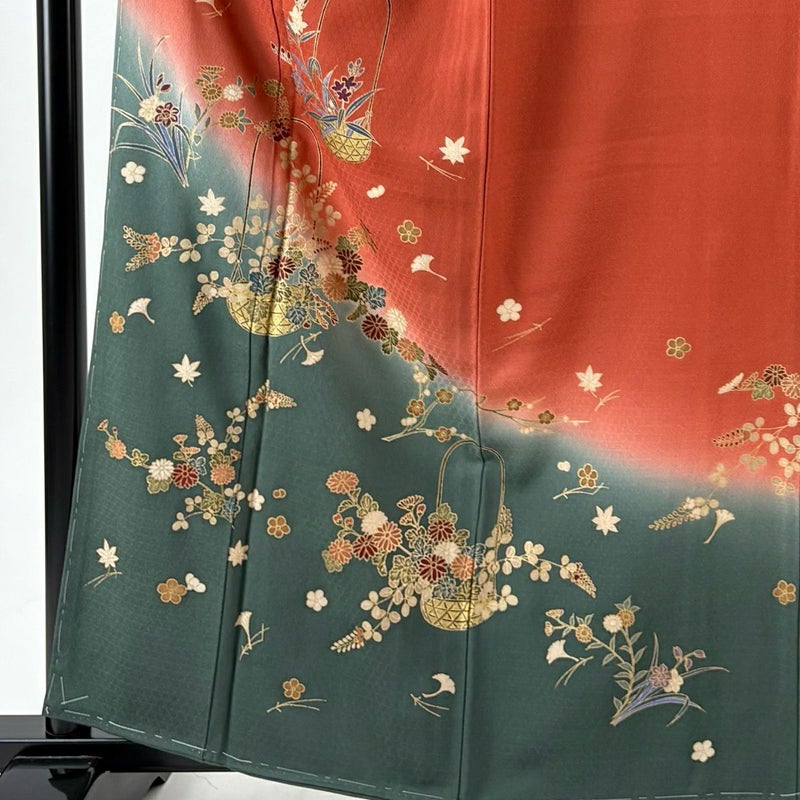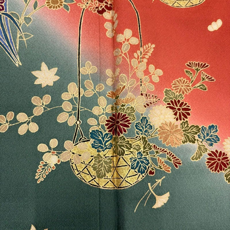 【着物ランク】秀品 【素材】正絹 【身丈】約162cm 【裄丈】約65cm 【袖丈】約56cm 【袖幅】約34cm 【前幅】約22.5cm 【後幅】約30cm 【サイズ】M 【着物仕立て】袷 【着用時期】10~5月 【状態ランク】ランクA 【着物着用シーン】披露宴、パーティー、お見合い、式典、茶会