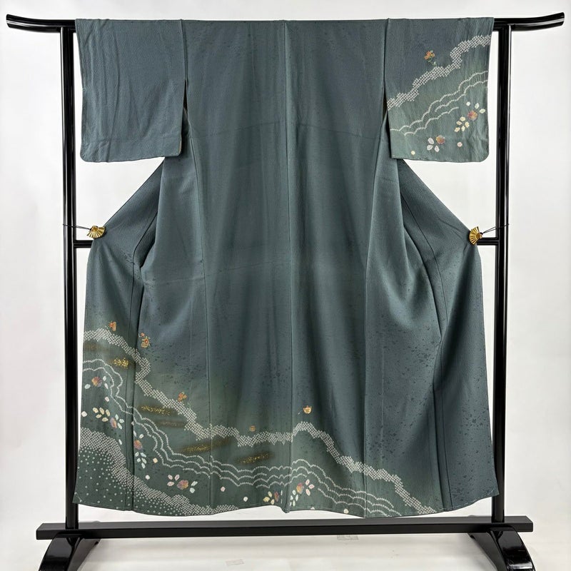 【訪問着】 灰色系 灰緑 秀品 B 約150cm~約159cm 裄丈62cm以下 (S)size 袖丈46cm以下 7990-9980 二万以下