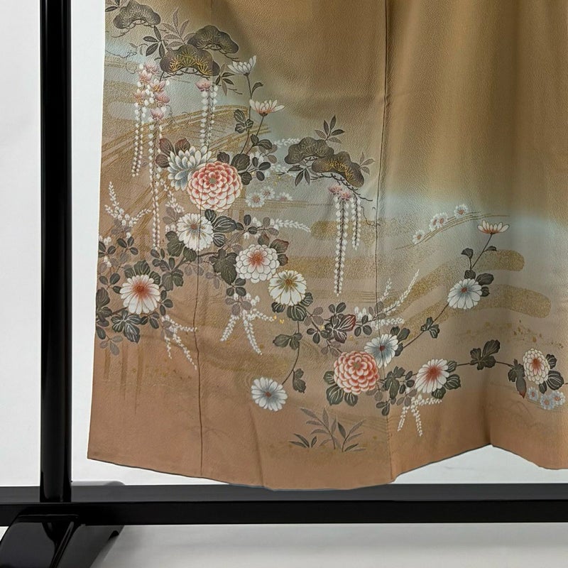【訪問着】 茶系 薄茶色 秀品 B 約150cm~約159cm 裄丈62cm以下 (S)size 袖丈50cm-60cm 7990-9980 二万以下
