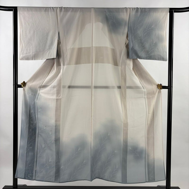 【着物ランク】秀品 【素材】正絹 【身丈】約152.5cm 【裄丈】約63.5cm 【袖丈】約46cm 【袖幅】約33.5cm 【前幅】約22.5cm 【後幅】約28.5cm 【サイズ】S 【着物仕立て】薄物 【着用時期】7~8月 【状態ランク】ランクB 【着物着用シーン】披露宴、パーティー、お見合い、式典、茶会