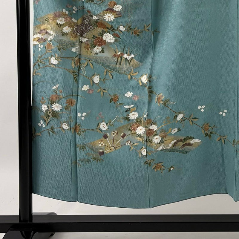 【訪問着】 青系 薄青緑 秀品 B 約150cm~約159cm 裄丈63cm-64cm (S)size 袖丈47cm 7990-9980 二万以下