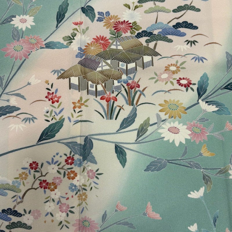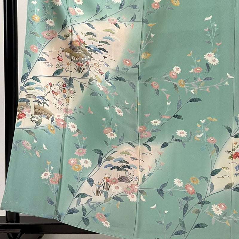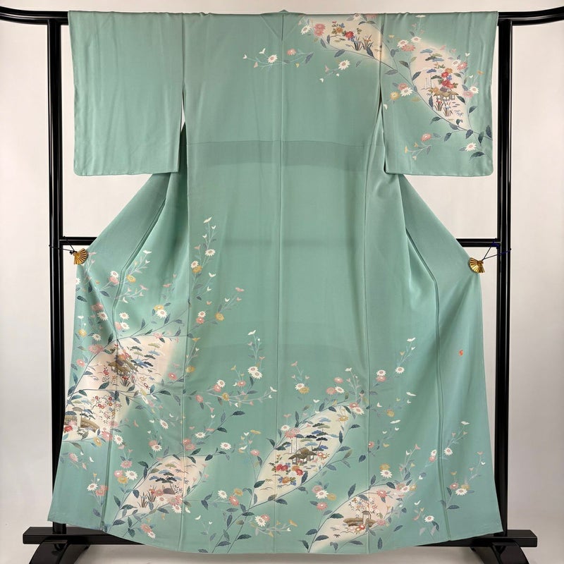 【訪問着】 緑系 薄緑 秀品 B 約160cm~約169cm 裄丈62cm以下 (S)size 袖丈49cm 7990-9980 二万以下