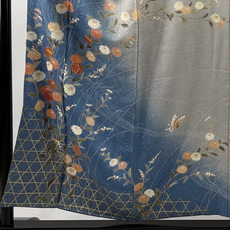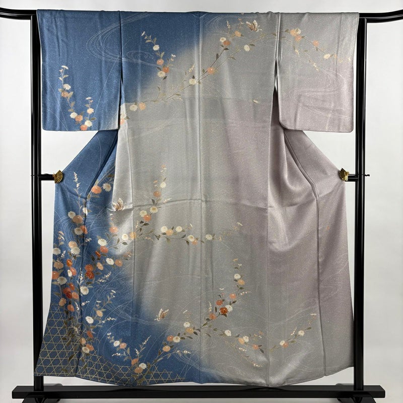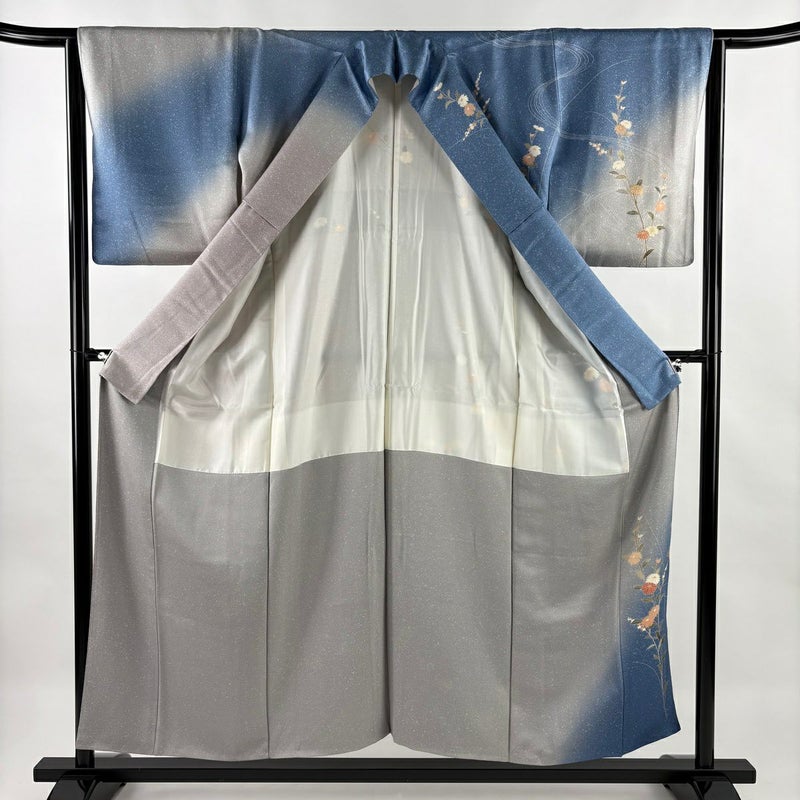 【訪問着】 灰色系 青灰色 秀品 A 約150cm~約159cm 裄丈63cm-64cm (M)size 袖丈48cm 9990-29990 美品 二万以下