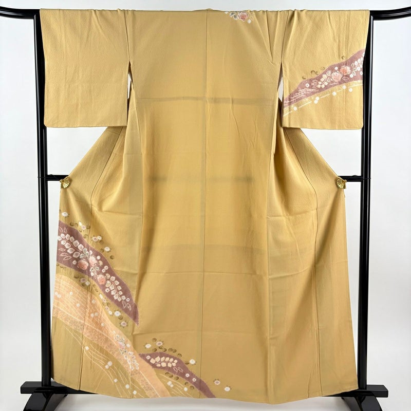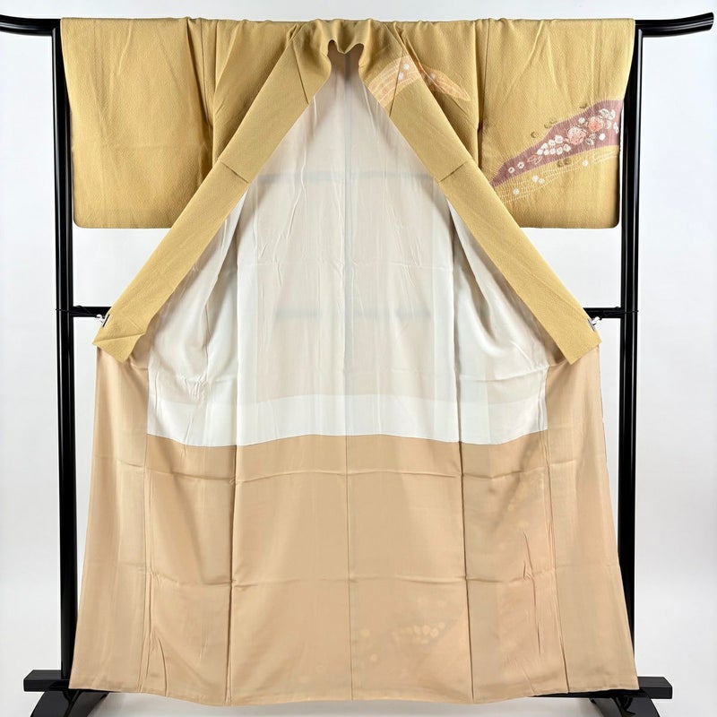 【着物ランク】秀品 【素材】正絹 【身丈】約161.5cm 【裄丈】約66cm 【袖丈】約48.5cm 【袖幅】約33.5cm 【前幅】約22.5cm 【後幅】約28.5cm 【サイズ】M 【着物仕立て】袷 【着用時期】10~5月 【状態ランク】ランクC 【着物着用シーン】披露宴、パーティー、お見合い、式典、茶会