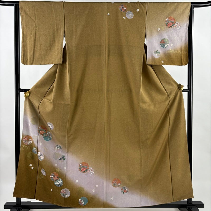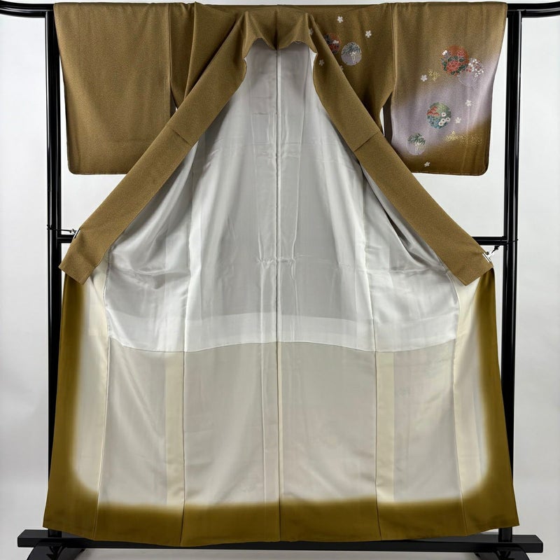 【訪問着】 茶系 茶色 秀品 A 約160cm~約169cm 裄丈63cm-64cm (M)size 袖丈48cm 9990-29990 美品 二万以下