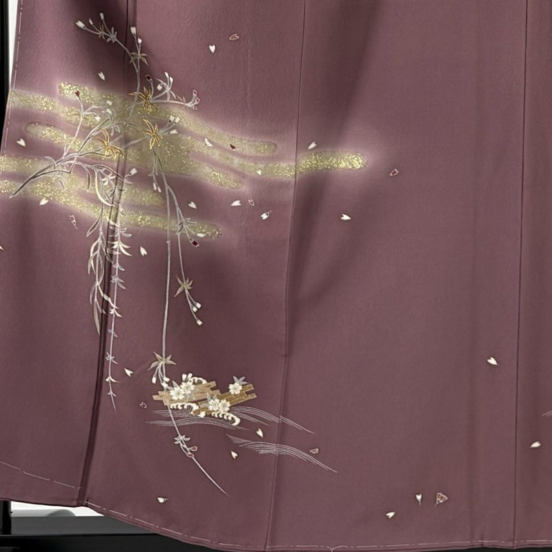 【着物ランク】秀品 【素材】正絹 【身丈】約159cm 【裄丈】約64cm 【袖丈】約48.5cm 【袖幅】約32.5cm 【前幅】約24.5cm 【後幅】約30.5cm 【サイズ】M 【着物仕立て】袷 【着用時期】10~5月 【状態ランク】ランクB 【着物着用シーン】披露宴、パーティー、お見合い、式典、茶会