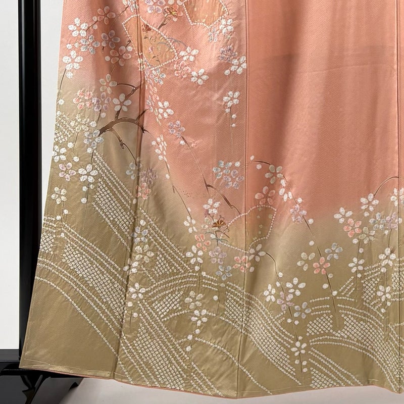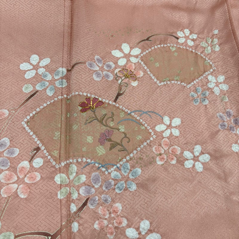 【訪問着】 赤系 ピンク 秀品 B 約160cm~約169cm 裄丈67cm-68cm (L)size 袖丈50cm-60cm 7990-9980 二万以下