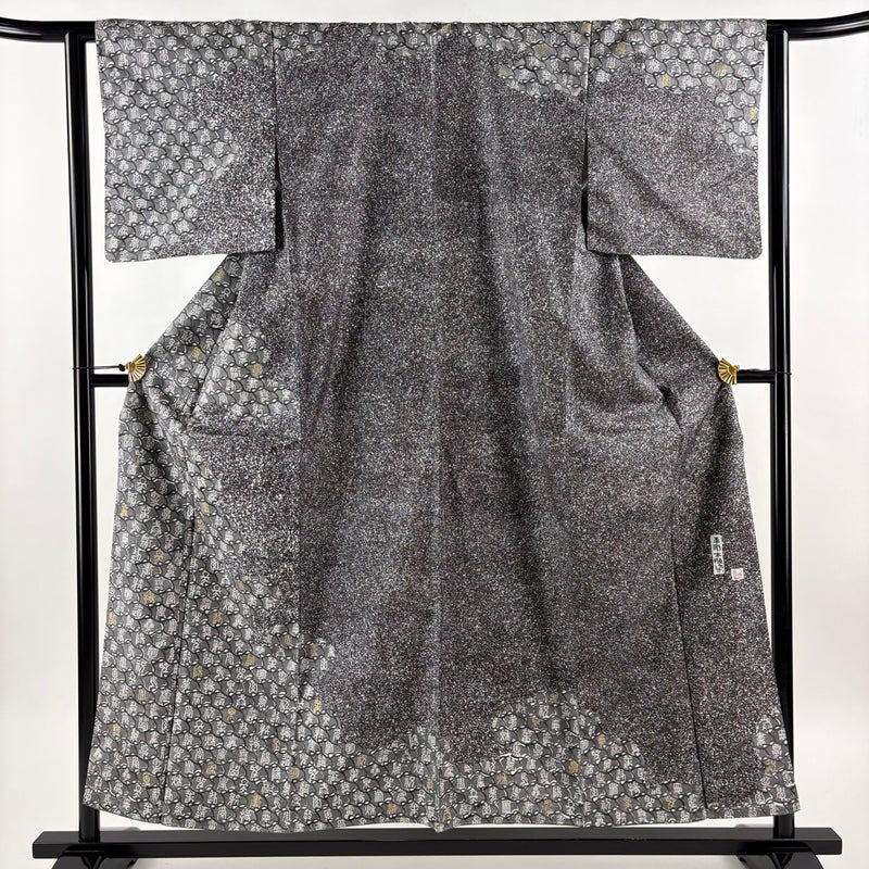 【訪問着】 灰色系 黒灰 秀品 A 約150cm~約159cm 裄丈62cm以下 (S)size 袖丈47cm 9990-29990 美品 二万以下