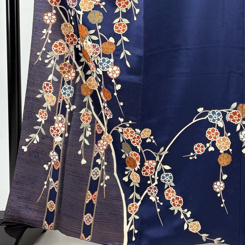 【訪問着】 青系 紺色 秀品 B 約160cm~約169cm 裄丈66cm (M)size 袖丈50cm-60cm 7990-9980 二万以下