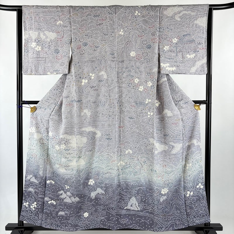 【訪問着】 灰色系 灰紫 秀品 B 約150cm~約159cm 裄丈63cm-64cm (S)size 袖丈49cm 7990-9980 二万以下