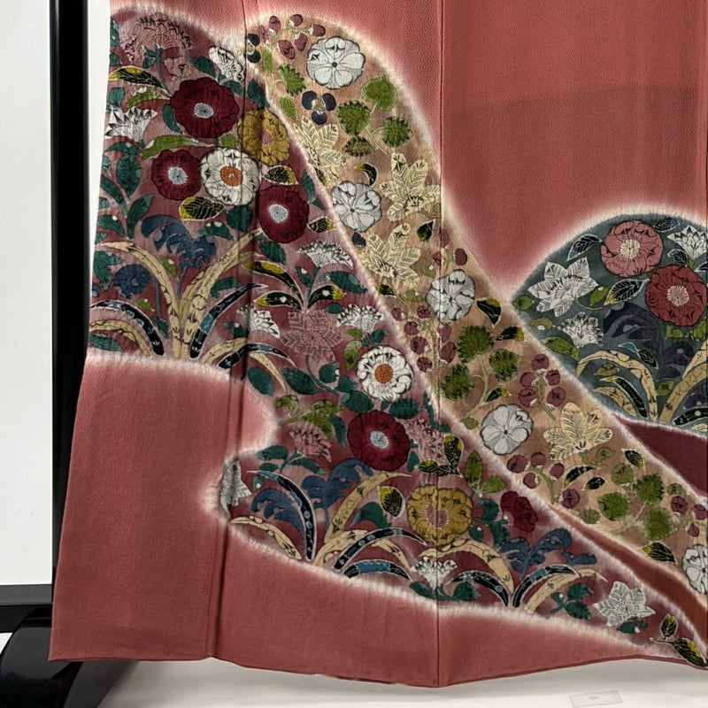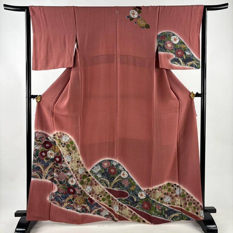 【訪問着】 赤系 ピンクベージュ 秀品 B 約160cm~約169cm 裄丈63cm-64cm (S)size 袖丈48cm 7990-9980 二万以下