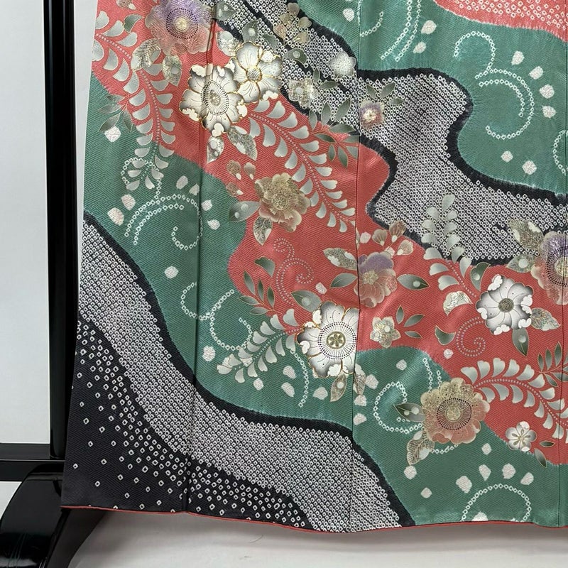 【着物ランク】秀品 【素材】正絹 【身丈】約163.5cm 【裄丈】約67cm 【袖丈】約52.5cm 【袖幅】約34.5cm 【前幅】約23cm 【後幅】約28.5cm 【サイズ】M 【着物仕立て】袷 【着用時期】10~5月 【状態ランク】ランクB 【着物着用シーン】披露宴、パーティー、お見合い、式典、茶会