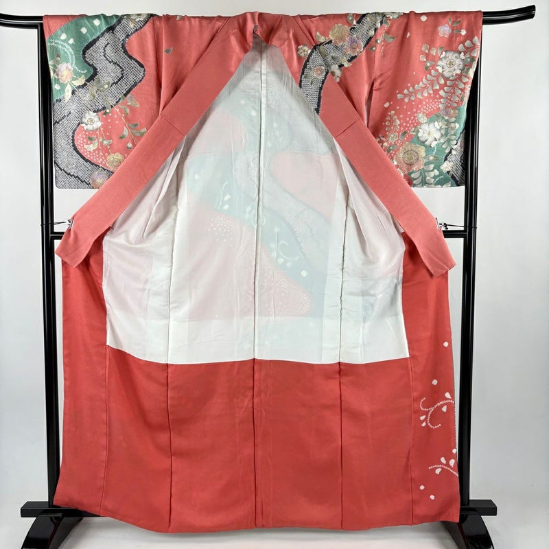 【訪問着】 赤系 サーモンピンク 秀品 B 約160cm~約169cm 裄丈67cm-68cm (M)size 袖丈50cm-60cm 7990-9980 二万以下