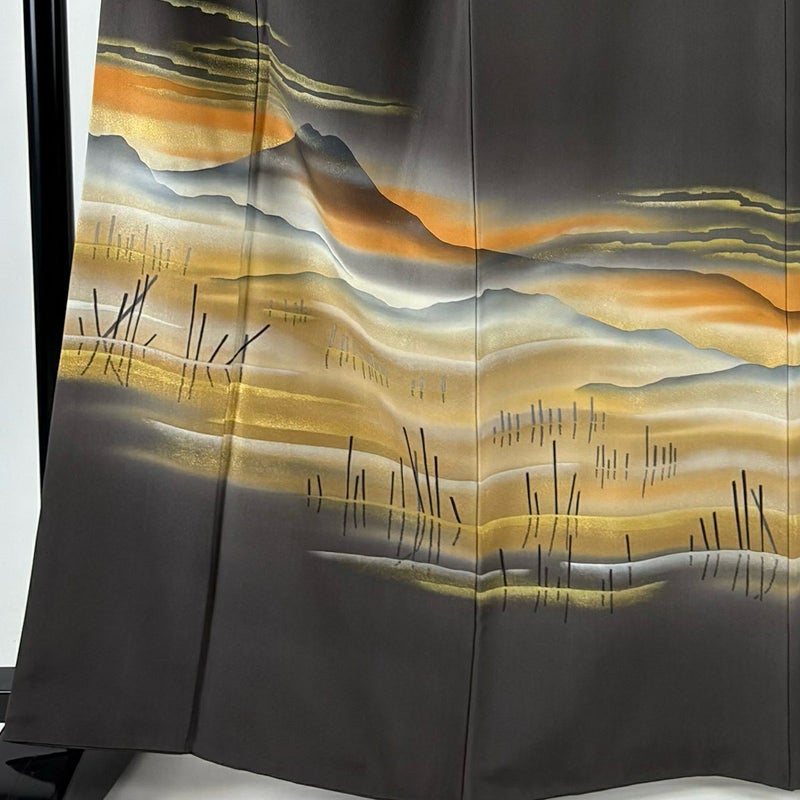 【訪問着】 灰色系 灰茶 秀品 B 約160cm~約169cm 裄丈65cm (M)size 袖丈48cm 7990-9980 二万以下