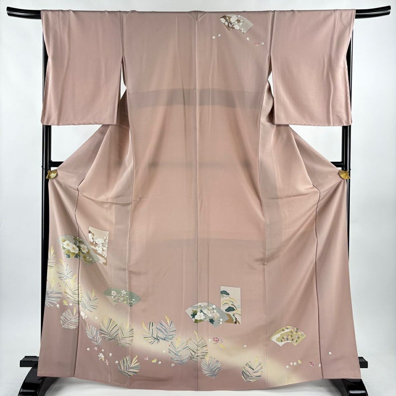 【訪問着】 赤系 ピンクベージュ 秀品 C 約160cm~約169cm 裄丈67cm-68cm (L)size 袖丈50cm-60cm 7990-9980 二万以下