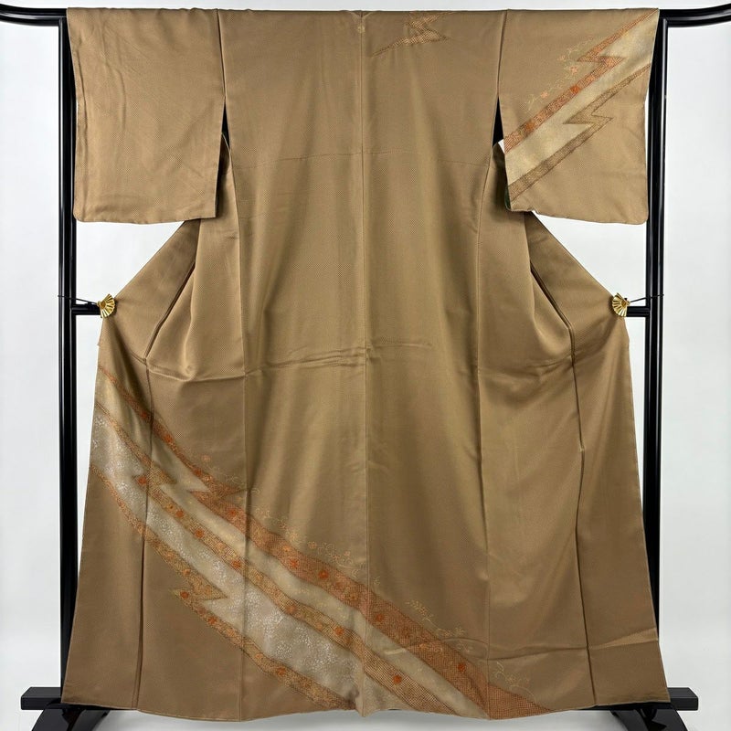 【訪問着】 茶系 茶色 秀品 A 約160cm~約169cm 裄丈66cm (M)size 袖丈48cm 9990-29990 美品 二万以下