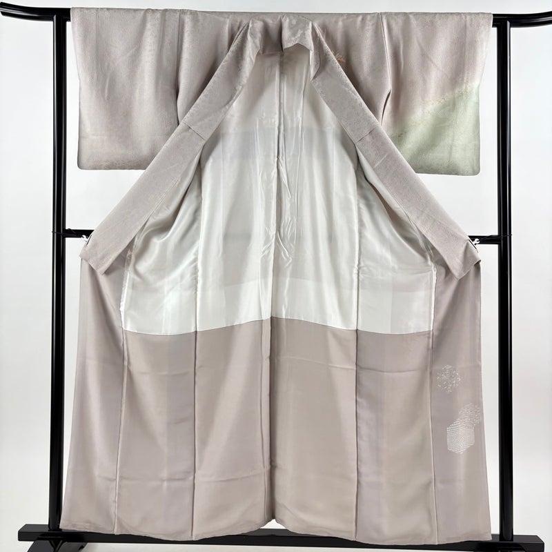 【着物ランク】秀品 【素材】正絹 【身丈】約157cm 【裄丈】約61.5cm 【袖丈】約48.5cm 【袖幅】約32.5cm 【前幅】約22.5cm 【後幅】約27.5cm 【サイズ】S 【着物仕立て】袷 【着用時期】10~5月 【状態ランク】ランクB 【着物着用シーン】披露宴、パーティー、お見合い、式典、茶会