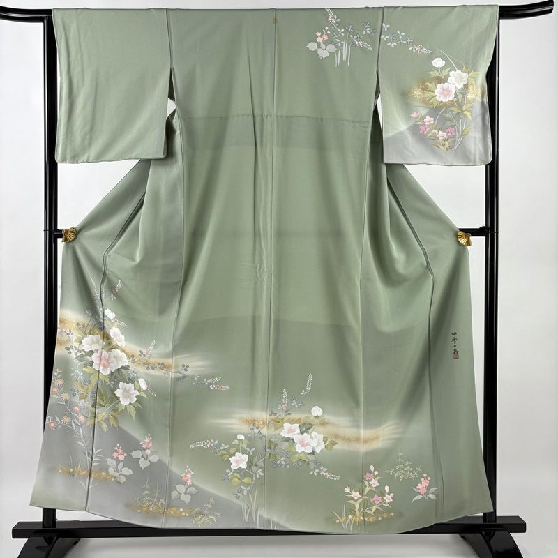 【訪問着】 緑系 薄緑 秀品 B 約150cm~約159cm 裄丈65cm (M)size 袖丈48cm 7990-9980 二万以下