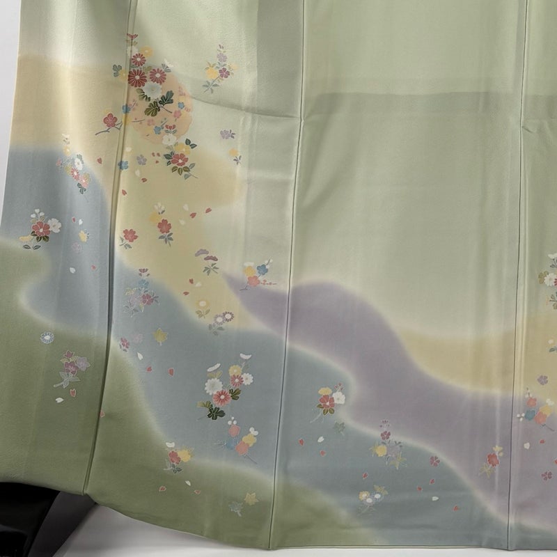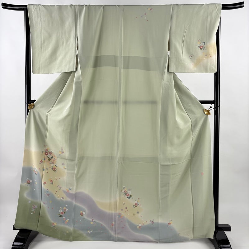 【訪問着】 緑系 薄緑 秀品 B 約160cm~約169cm 裄丈67cm-68cm (M)size 袖丈48cm 7990-9980 二万以下