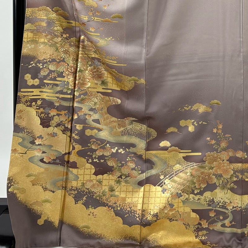 【着物ランク】秀品 【素材】正絹 【身丈】約170cm 【裄丈】約68cm 【袖丈】約48cm 【袖幅】約34cm 【前幅】約24.5cm 【後幅】約29.5cm 【サイズ】L 【着物仕立て】袷 【着用時期】10~5月 【状態ランク】ランクB 【着物着用シーン】披露宴、パーティー、お見合い、式典、茶会