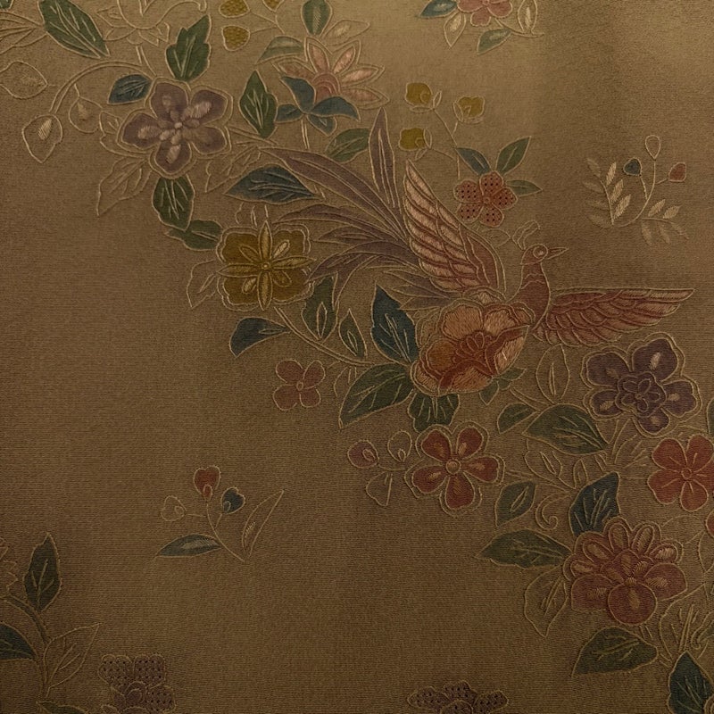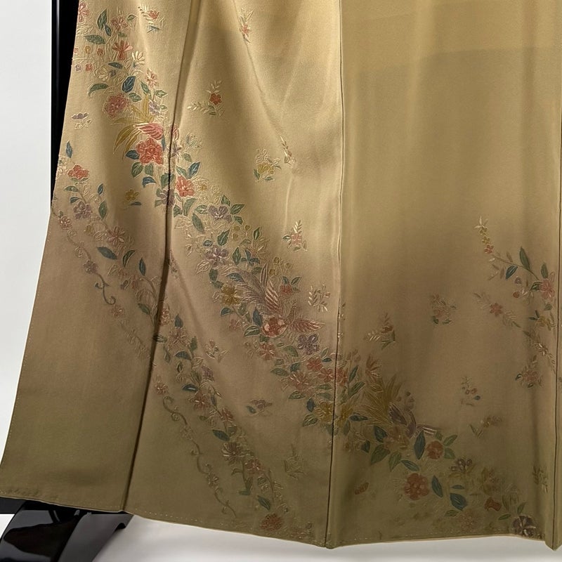 【着物ランク】秀品 【素材】正絹 【身丈】約161.5cm 【裄丈】約66cm 【袖丈】約48cm 【袖幅】約34cm 【前幅】約27cm 【後幅】約32cm 【サイズ】M 【着物仕立て】袷 【着用時期】10~5月 【状態ランク】ランクA 【着物着用シーン】披露宴、パーティー、お見合い、式典、茶会