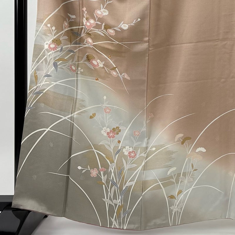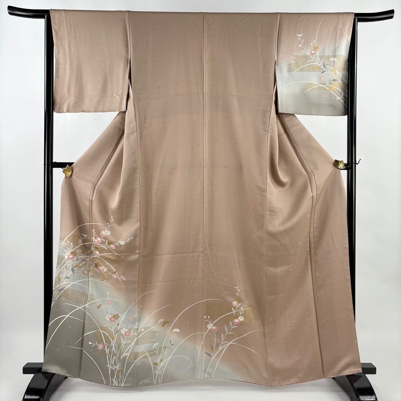 【着物ランク】秀品 【素材】正絹 【身丈】約163cm 【裄丈】約64.5cm 【袖丈】約45cm 【袖幅】約33cm 【前幅】約24.5cm 【後幅】約30cm 【サイズ】M 【着物仕立て】袷 【着用時期】10~5月 【状態ランク】ランクB 【着物着用シーン】披露宴、パーティー、お見合い、式典、茶会