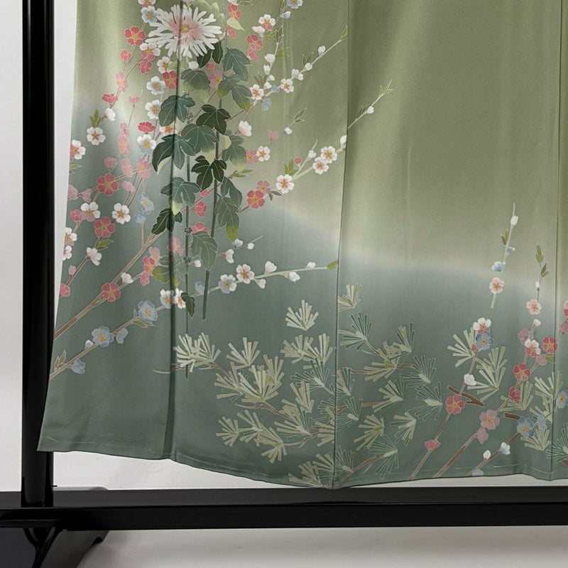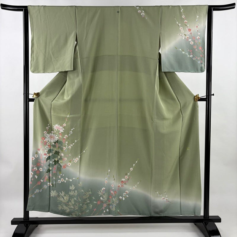 【訪問着】 緑系 薄緑 秀品 A 約150cm~約159cm 裄丈63cm-64cm (M)size 袖丈49cm 9990-29990 美品 二万以下