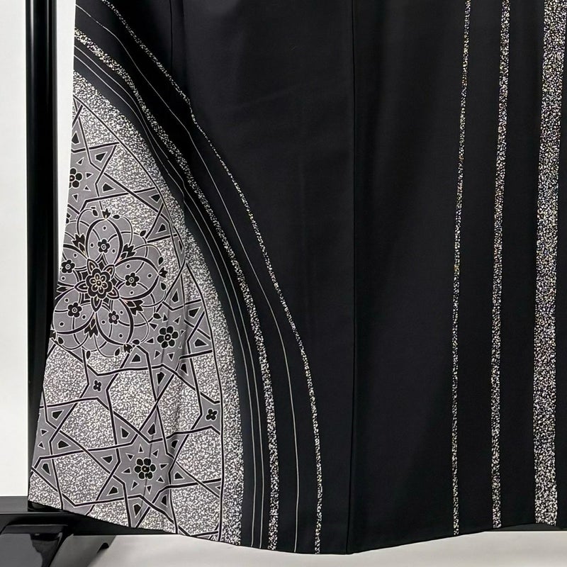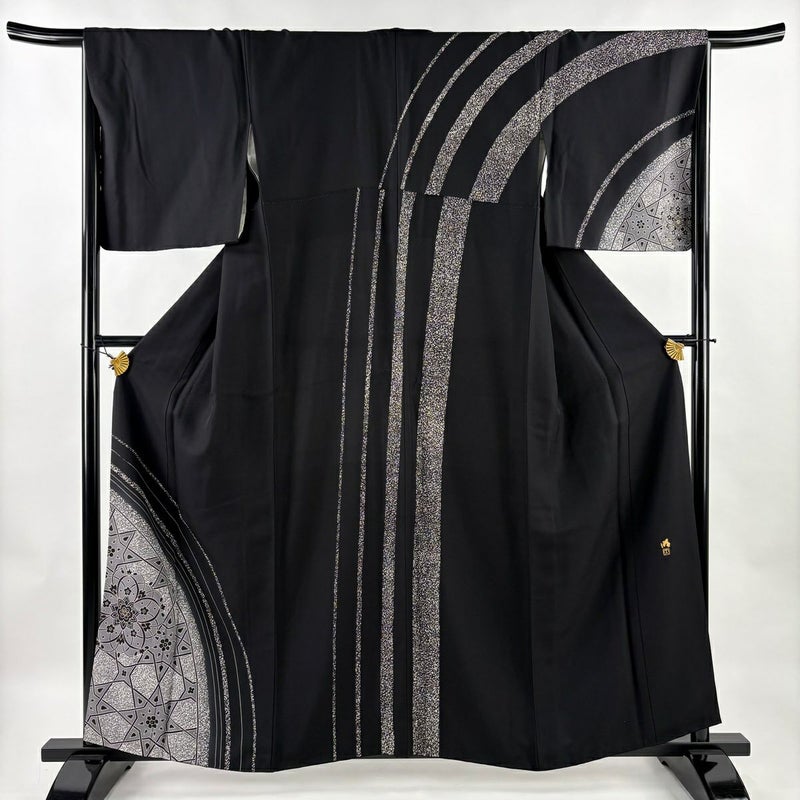 【訪問着】 黒系 黒 秀品 A 約150cm~約159cm 裄丈67cm-68cm (L)size 袖丈48cm 9990-29990 美品 二万以下
