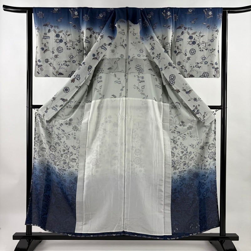 【訪問着】 灰色系 青灰色 秀品 A 約150cm~約159cm 裄丈62cm以下 (S)size 袖丈47cm 9990-29990 美品 二万以下