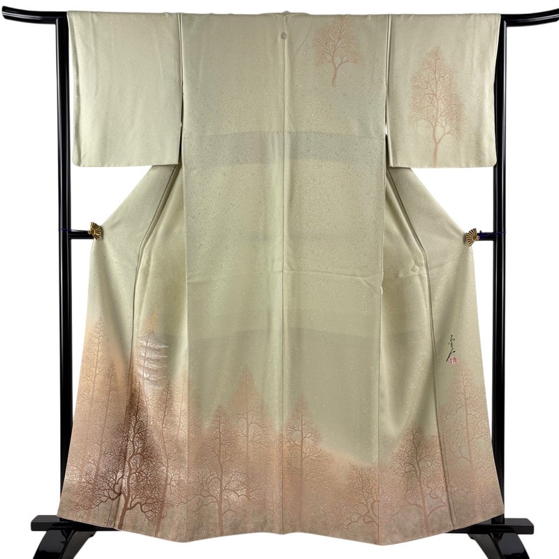 【訪問着】 緑系 抹茶色 秀品 B 約150cm~約159cm 裄丈63cm-64cm (M)size 袖丈46cm以下 7990-9980 二万以下